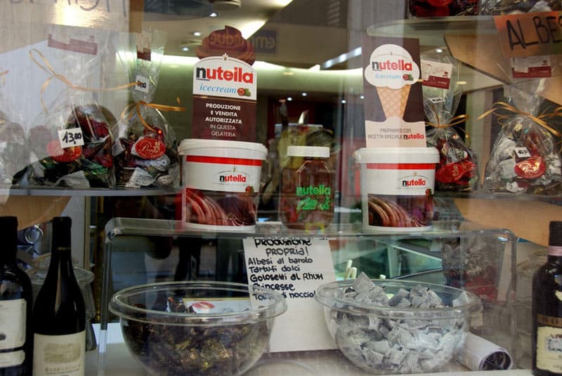 50 Jahre Nutella – ein guter Grund zu feiern. In Alba, der Stadt in der die Firma Ferrero ihren Hauptsitz hat, feiern alle mit. Kaum ein Geschäft in der Innenstadt, das in seinem Schaufenster nicht an das prominente Geburtstagskind erinnert. Andreas, ein Gast unserer Cascina Cerea, hat bei einem Besuch der Stadt diese Hommage an eine Nusskreme im Bilde festgehalten. Ihm verdanken wir diese herrlichen Fotos.